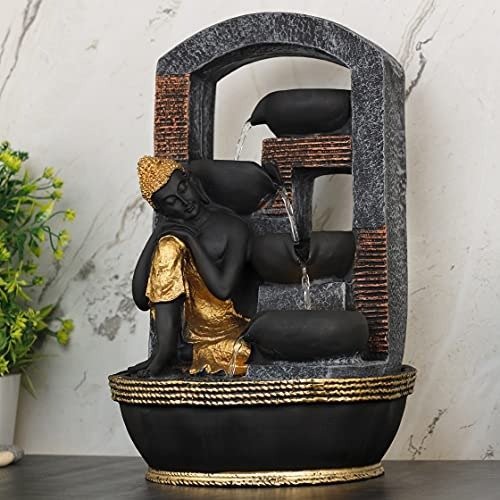Water Fountains add an essence of beauty and charm to your interiors. This Water Fountain By Global Grabbers On ‘Amazon’ is not just limited to your living area, but can also be added as decor piece For Bedroom, Kitchen, Dining, Balcony and in the Office. The sound of water fall from Water Fountain is believed to soothe and calm the ambience and also bring positive aura to the environment. It can also be a perfect gift for your colleagues, family and friends during events.The calming sound of naturally flowing water are relaxing and restorative, which provides perfect ambience of relaxation and meditation. Our Innovative Water indoor Fountains are the perfect showpiece item to enhance the beauty of your house. It brings peace, calm and positivity to your indoors. Indoor fountain For Home Decoration is an ideal gift with best wishes to your family, parents, friends, neighbours, etc. We trust our products and assure to give you the best quality. Add this restful, Statue with tabletop fountain to your home or office to experience natural water sound. It?s easy to close your eyes and imagine you?re near by a real river or stream This water fountain is made up of high quality material and will definitely add elegance to your Home/Office Decor.