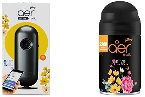 Godrej aer Smart Matic Kit – BLUETOOTH ENABLED Automatic Air Freshener spray| Alive (225ml) & Smart Matic Refill – BLUETOOTH ENABLED Automatic Air Freshener Spray | Alive (225ml) – Fast Shipping to USA & Canada