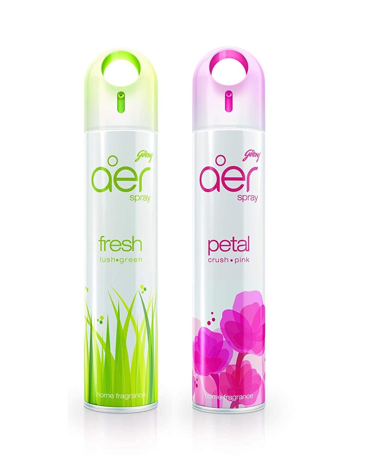 - Two units of Godrej Aer Room Freshener Spray (240 ml each) in the variants Fresh Lush Green and Petal Crush Pink.