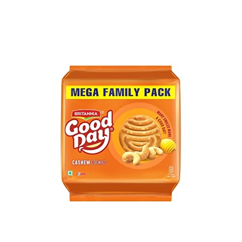 Britannia Good Day Cashew Cookies are irresistibly crunchy treats infused with the delightful essence of cashews. Completely vegetarian, these cookies are perfect for satisfying your snack cravings between meals. Britannia’s range of biscuits, cookies, cakes, and rusks makes for an ideal accompaniment to your tea. Committed to providing fresh and wholesome products, Britannia India produces some of the nations beloved brands, including 50-50, Tiger, NutriChoice, Bourbon, Milk Bikis, and Marie Gold.