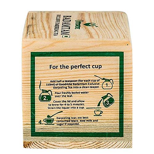 - GOODRICKE Badamtam Darjeeling Tea is a 250 gm package of premium whole leaf black tea.