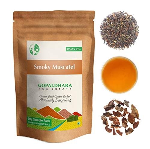 - High Mountain Smoky – This Gopaldhara Smoky Mountain Tea is crafted for connoisseurs of smoked infusions. This classic Darjeeling black tea is gently heated over burning pinewood shavings, which enhances its flavor profile with notes of dried lychee and a distinctive smoky essence, accompanied by a delicate floral aroma. The use of pinewood for smoking also adds subtle hints of pine resin in both aroma and taste.