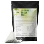 Fragrant jasmine-scented green tea in convenient pyramid bags.