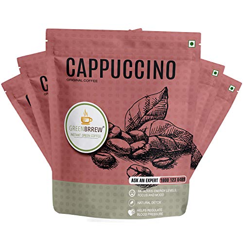 Greenbrrew Cappuccino Instant Coffee | Green Coffee Extract (“PL-AAA”) + Probiotics | Hot & Cold Coffee | 20 Sachets, 30g (Pack Of 5) – Fast Shipping to USA & Canada