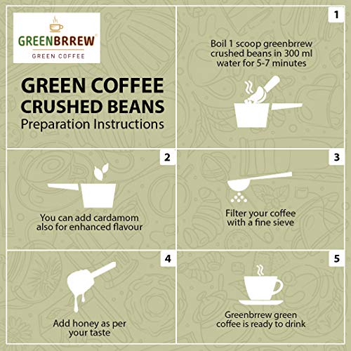 - To prepare, boil 1 scoop of ‘Crushed Green Coffee Beans’ in 300ml of water for 5-10 minutes. Strain using a fine sieve, and your Green Coffee is ready to enjoy.