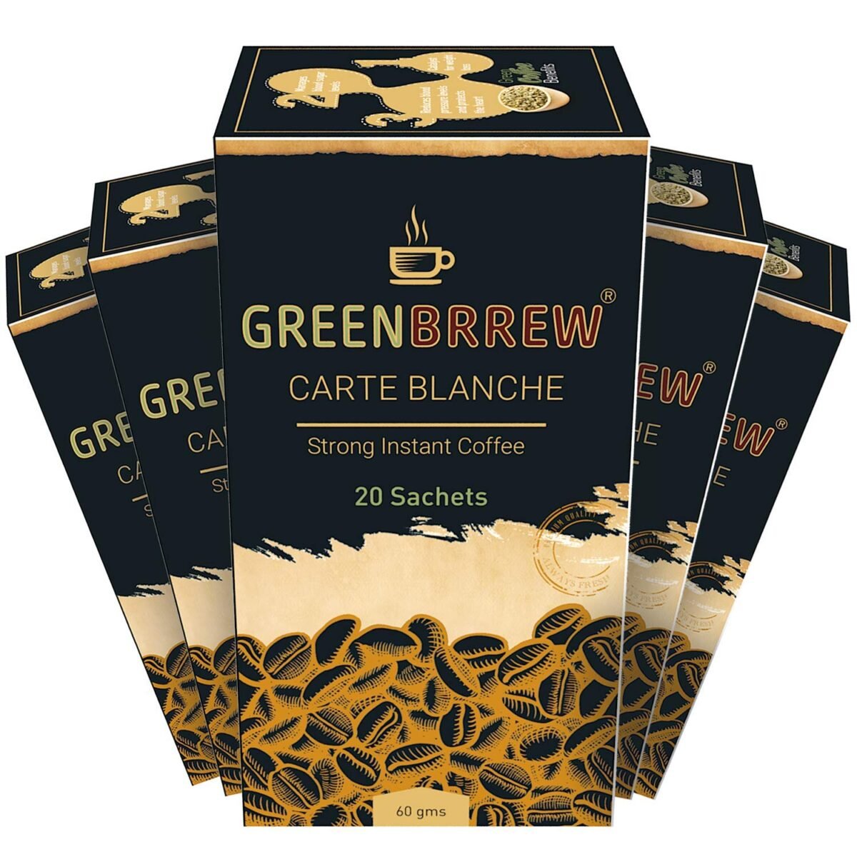 Greenbrrew Strong Instant Coffee Premix | 100% Unroasted Arabica Coffee Beans | Green Coffee Extract (“PL-AAA”) + Probiotics | Hot & Cold Coffee | 20 Sachets, 60g Each – (Pack Of 5) – Fast Shipping to USA & Canada