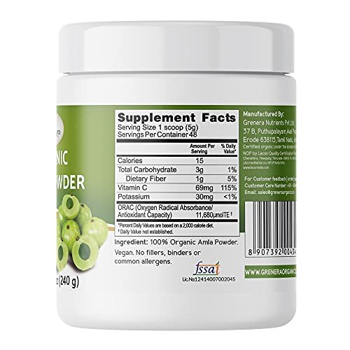 Grenera Amla Powder 240g (Emblica officinalis / Indian Gooseberry) for drinking and eating | For Skin, Hair Growth – Fast Shipping to USA & Canada