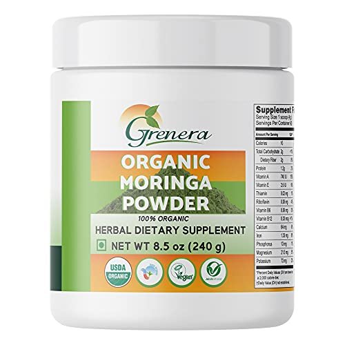 Grenera Moringa (Drumstick) Leaf Powder 240 gram, Vegan, Perfect For Smoothies, Salads, Herbal Teas – Fast Shipping to USA & Canada
