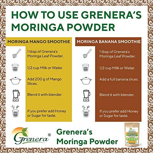 10 reviews for Grenera Moringa (Drumstick) Leaf Powder 240 gram, Vegan, Perfect For Smoothies, Salads, Herbal Teas – Fast Shipping to USA & Canada