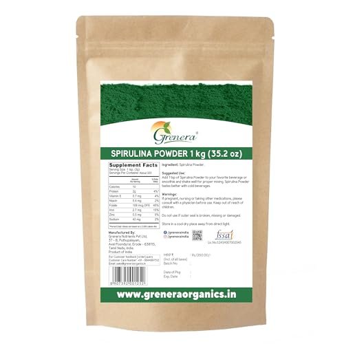 10 reviews for Grenera Pure Spirulina Powder | Protein Algae Superfood Supplement | Organically Grown 1 kg – Fast Shipping to USA