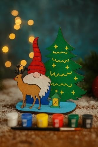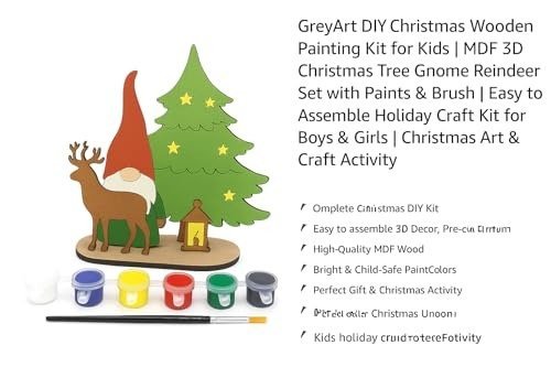 GreyArt DIY Christmas Wooden Painting Kit for Kids | MDF 3D Christmas Gnome, Reindeer & Tree Craft Set with Paints & Brush | Easy to Assemble Art & Craft Activity for Boys & Girls – Fast Shipping to USA & Canada