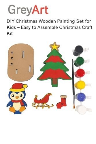 GreyArt DIY Christmas Wooden Painting Set for Kids ? Penguin & Christmas Tree MDF Craft Kit with Paints & Brush | Fun Holiday Art & Craft Activity – Fast Shipping to USA & Canada