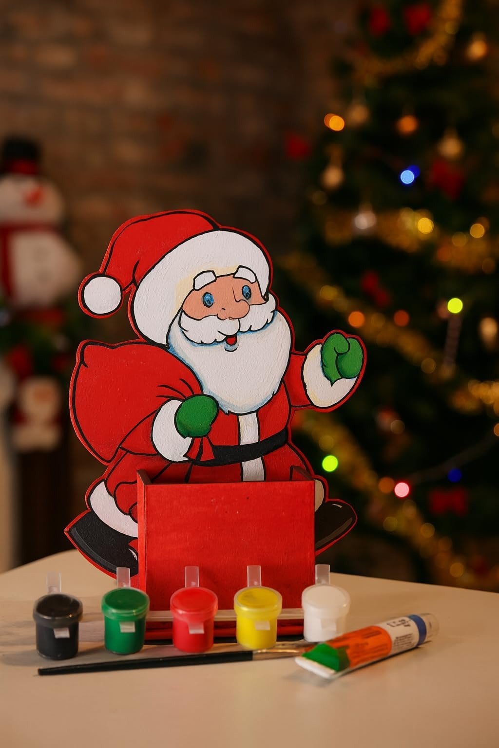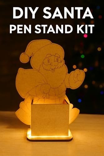 - ? DIY Santa Pen Holder Kit features a laser-cut MDF Santa figure, pen holder components, a paint set, brush, and glue-providing children with all the essentials for an enjoyable craft project.