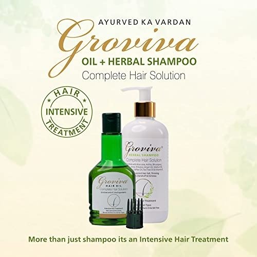 Groviva Hair Oil 100 ml | Complete Hair Solution | Helps to Control Hair Fall, Dandruff & Promotes Hair Growth | Ayurvedic Hair Oil (Oil + 100 ml Shampoo) – Fast Shipping to USA & Canada