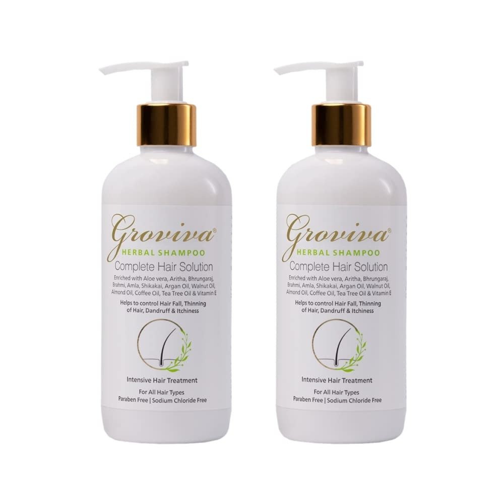Groviva Herbal Shampoo | Complete Hair Solution | Reduces Hair Fall, Dandruff (Pack of 2 (300ml X 2)) – Fast Shipping to USA & Canada