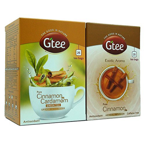 GTEE Green Tea Bags – Cinnamon & Cardamom & Cinnamon Tea Bags, 25 Tea bags (Pack of 2) – Fast Shipping to USA & Canada
