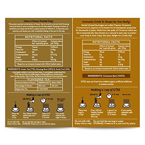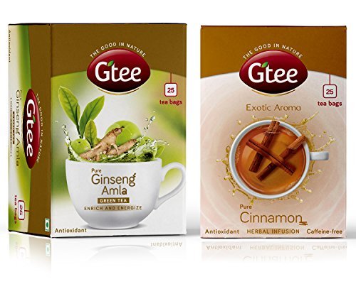 GTEE Green Tea Bags – Ginseng & Cinnamon Tea Bags, 25 Tea bags (Pack of 2) – Fast Shipping to USA & Canada