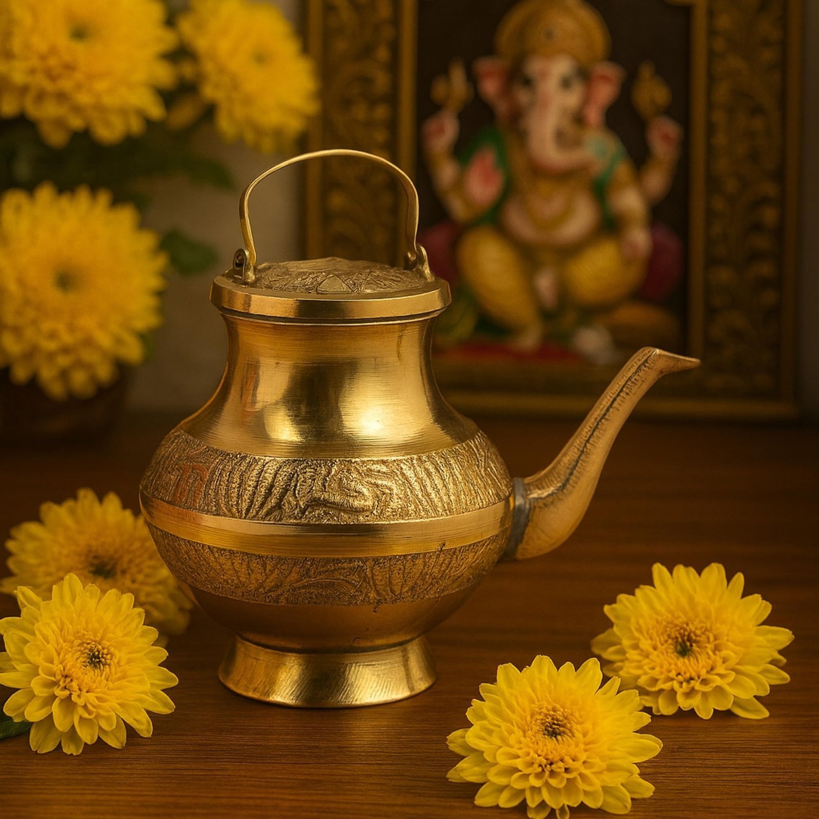 - Classic Brass Pooja Kalash: Made from premium-quality brass, this Kalash is ideal for storing gangajal, sacred water, or other essential items used in religious ceremonies.
