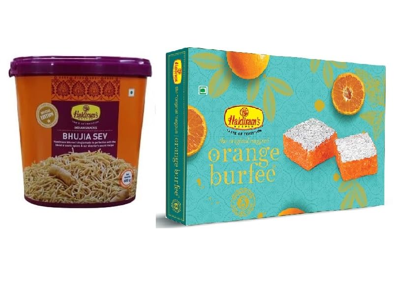 1) Haldiram’s Orange Burfee 500gm: The Orange Burfee is a signature treat from Haldiram, embodying the vibrant orange harvests of its native Nagpur. Indulge in the creamy, tangy, and citrusy delight of this burfee to elevate your palate and nourish your spirit!