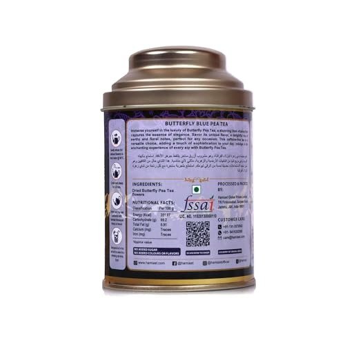 • Calming Herbal Brew: Immerse yourself in the fragrant delight of Hamiast Butterfly Blue Pea Flower Tea, a completely herbal concoction derived from the untouched Himalayan area.