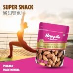 - Happilo offers oven-roasted quality almonds that are crisp, genuine, and bursting with flavor. Incorporate a handful into your diet to maintain your energy levels throughout the day.