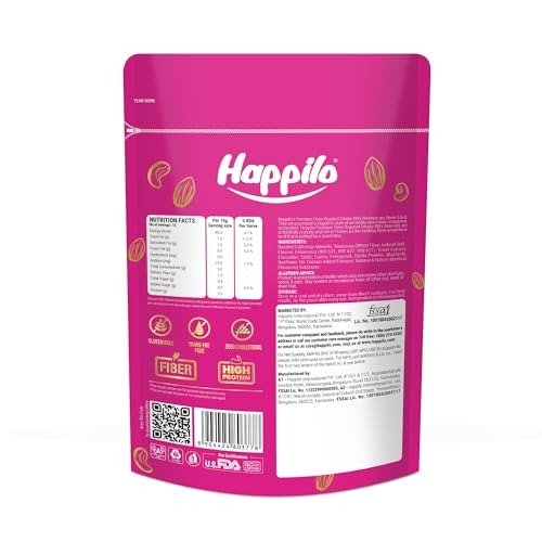 - Happilo offers oven-roasted quality almonds that are crisp, genuine, and bursting with flavor. Incorporate a handful into your diet to maintain your energy levels throughout the day.