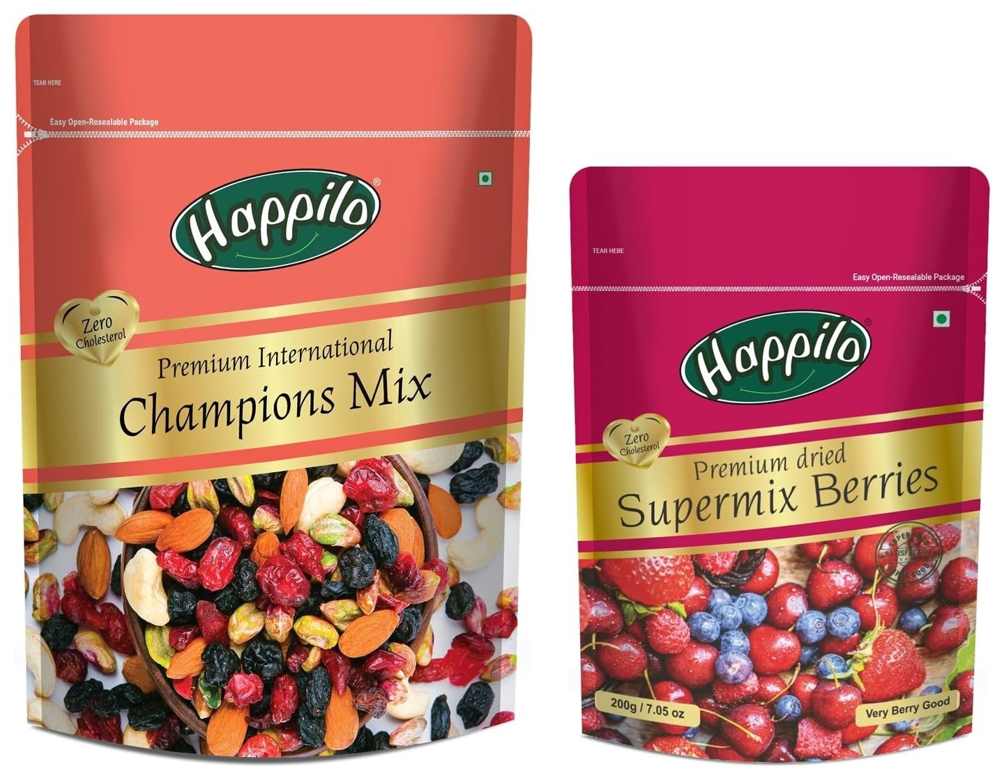 Happilo Premium International Champion Mix 160g (Pack of 1) & Happilo??Premium International Super Mix Berries, 200g – Fast Shipping to USA & Canada