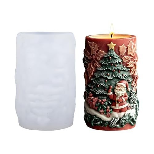 HASTHIP Christmas Candle Silicone Molds, 3D Candle Molds for Candles Making, Epoxy Resin Mold, Christmas Relief Cylinder Silicone Mold for DIY Wax Scented Soaps Art Craft Home Decor, White-B – Fast Shipping to USA & Canada