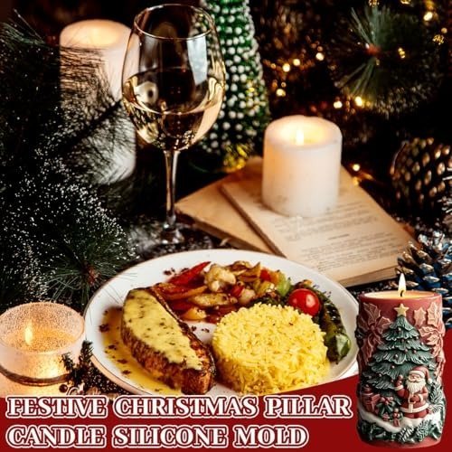 - FESTIVE CHRISTMAS PILLAR CANDLE SILICONE MOLD: This silicone mold for Christmas candles features intricately embossed holiday designs. Adorned with cheerful Christmas tree and Santa patterns, it brings delightful detail and character to every candle you create. Your finished pieces will make eye-catching seasonal gifts or serve as striking centerpieces for your festive decor.
