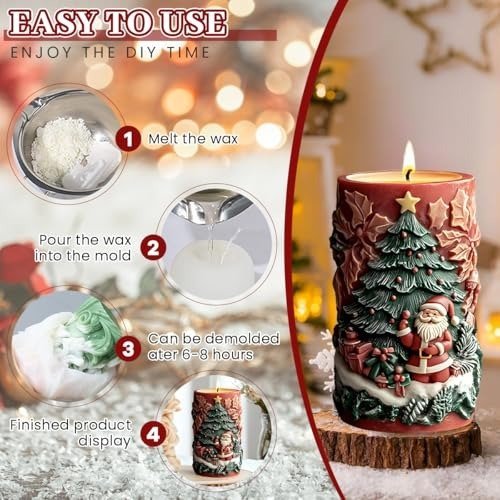 - PERFECT PRESENT FOR DIY ENTHUSIASTS: The 3D Relief Cylinder Christmas Candle Mold is an excellent and useful gift for those who love crafting. Offering this mold allows them to enjoy a creative and enjoyable experience making their own holiday candles for Christmas.