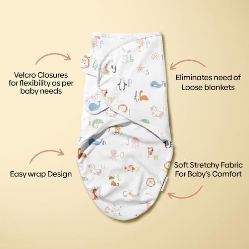 haus & kinder 100% Cotton Baby Swaddle Wrap for Newborn | Adjustable Easywrap Swaddle Blanket for 0-3 Months | Alphabet – Fast Shipping to USA & Canada
