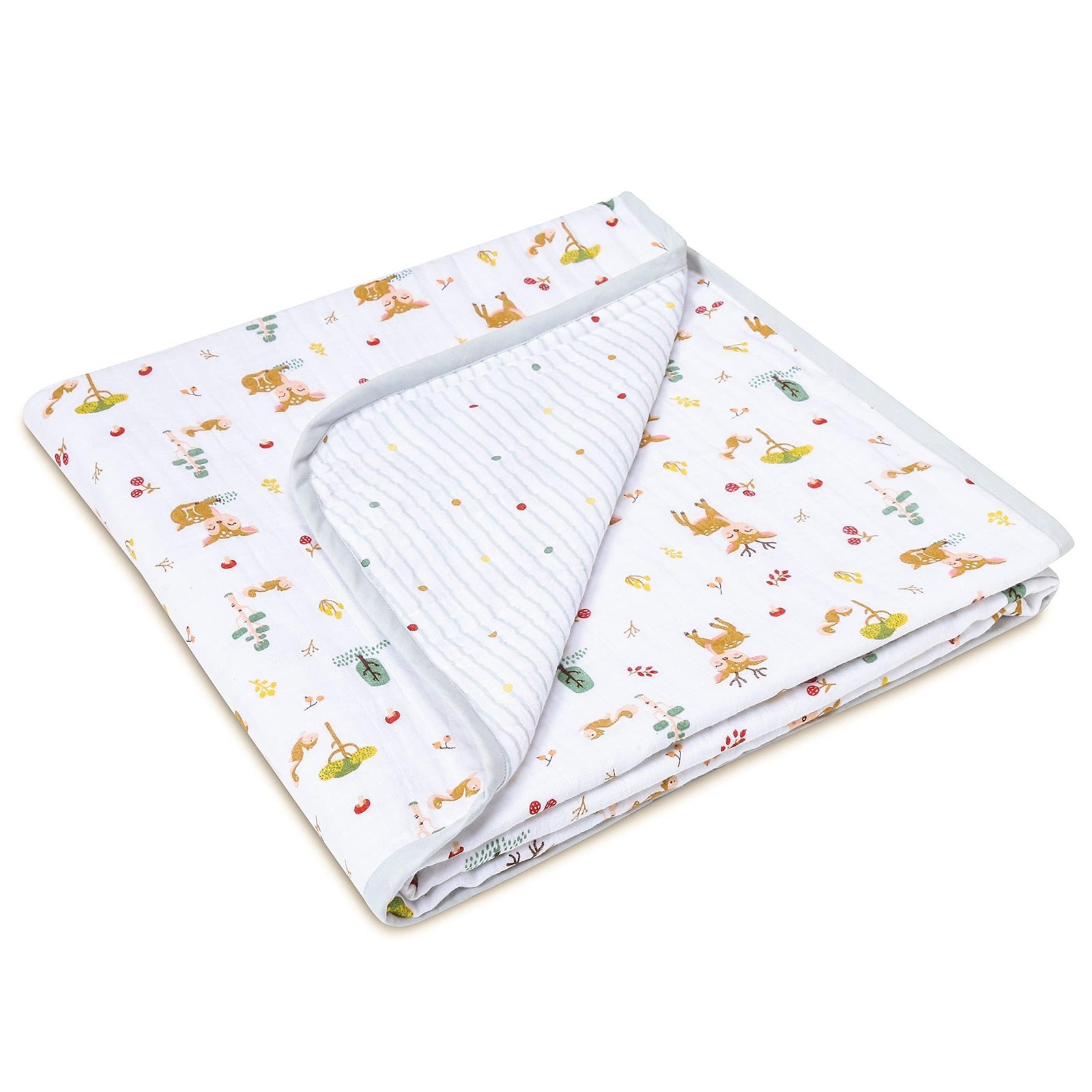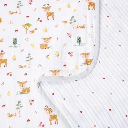 haus & kinder 100% Cotton Reversible Muslin Blanket for Newborn Baby Boy & Girl | Triple Layer Baby Blanket, Soft, Lightweight, Breathable | 0-3 Years | 120×120 cm ? Whimsical Woodland – Fast Shipping to USA & Canada
