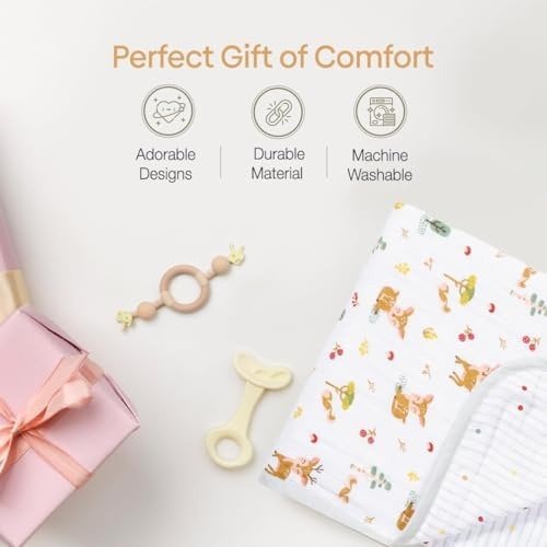 • STYLISH & REVERSIBLE: Featuring a globally inspired, fashionable design suitable for both baby boys and girls. Generously sized at 120 cm x 120 cm for maximum comfort and convenience. Crafted from ultra-soft, breathable 100% cotton muslin, these blankets are perfect for infants and toddlers aged 0-3 years, ensuring a gentle and cozy experience.