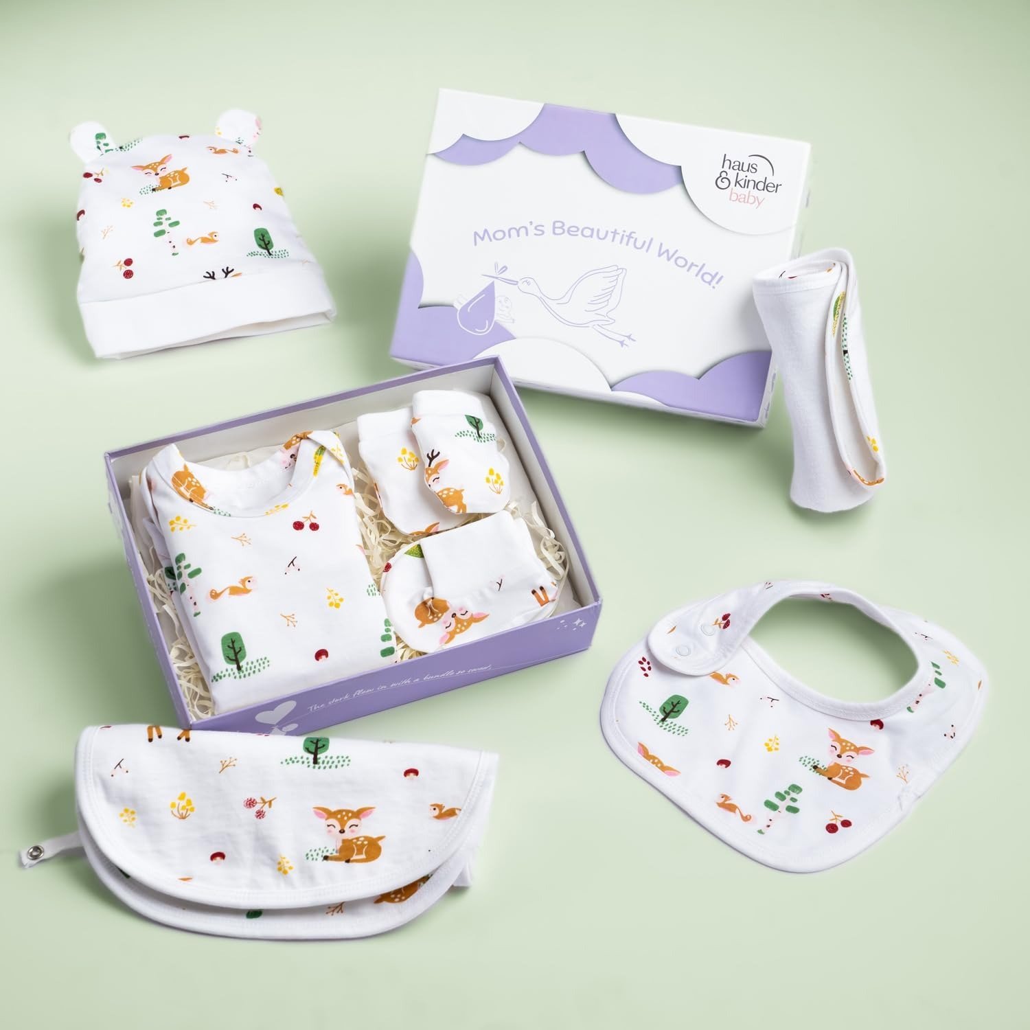 haus & kinder Baby Clothing Set All New Born Combo – Pack Of 5 | Essential Newborn Apparel | Baby Clothing Gift Set | Newborn Shower Gift | Newborn Gift Collection | Woodland Animal, White – Fast Shipping to USA & Canada