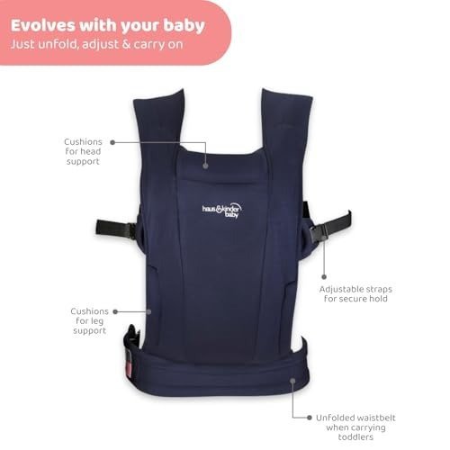 haus & kinder Enlace Baby Carrier Soft & Ergonomic Infant Carrier With Adjustable Straps,Hands-Free Design For Newborns (Age 0-18M,Weight 3.2-11.3 kg) Breathable,Lightweight,Machine Washable (Navy) – Fast Shipping to USA & Canada