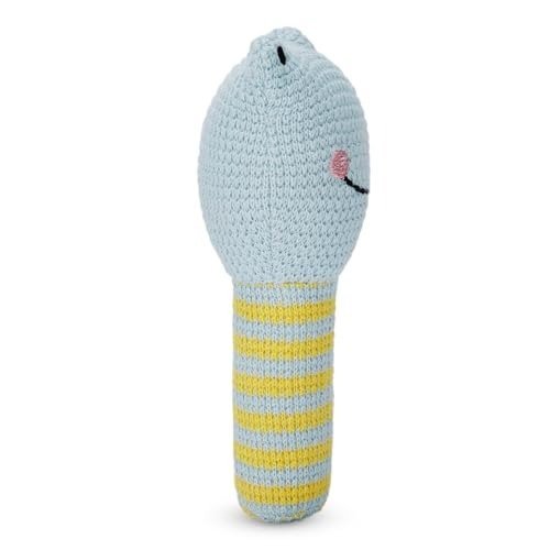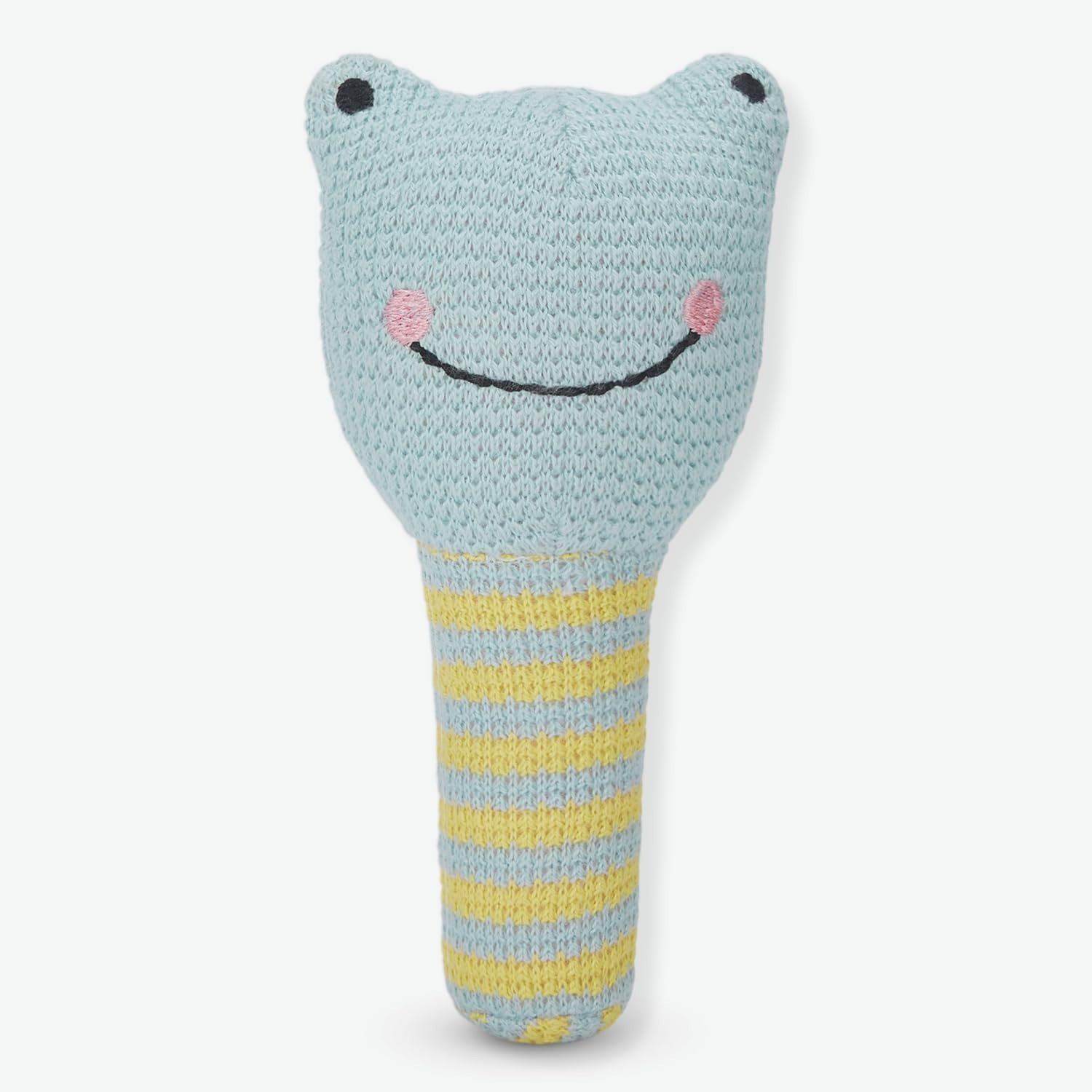 Haus & Kinder Froggy Baby Rattle Toy ? Pack of 1 | 100% Cotton Knitted Rattle for Newborns, Sensory Toy with Polyfibre Filling | Soft & Safe, Frog-Shaped Rattle for Boys Blue, 15 cm ? 0-2 Years – Fast Shipping to USA & Canada