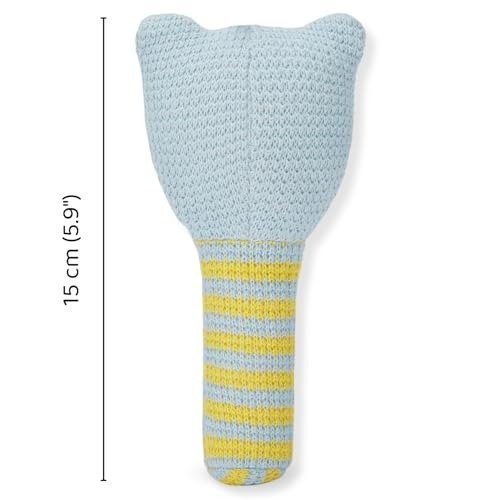 This charming frog-shaped rattle, crafted from 100% cotton and filled with soft polyfibre, is gentle, secure, and just the right size for tiny hands to grasp. Its soothing rattle sound helps calm your baby, making it a wonderful companion for both playtime and naps. Not only does it encourage early sensory exploration and motor skills, but it also brings a delightful touch to your little one?s collection of essentials.