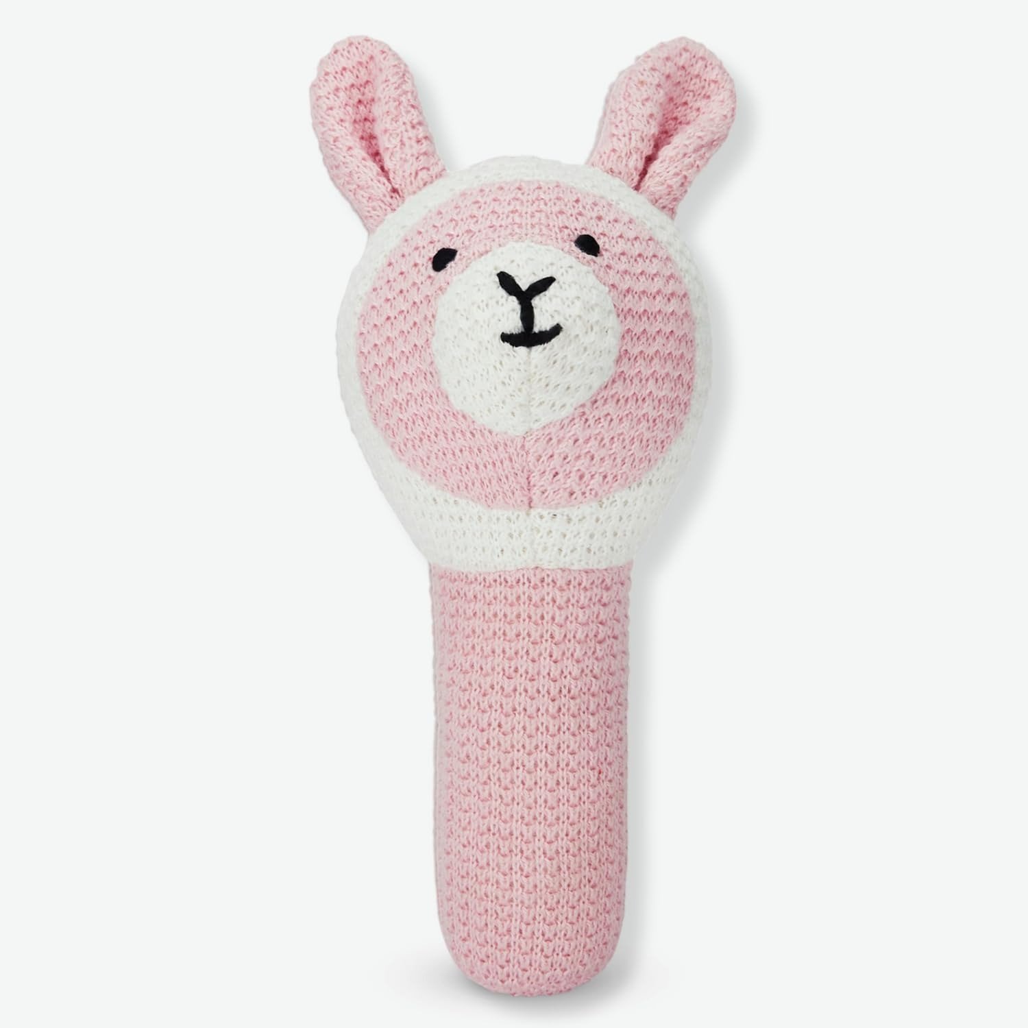 Crafted from gentle, baby-friendly cotton and filled with soft polyfibre, this 15cm pink sheep rattle is ideal for newborns and infants up to 2 years old. Its lightweight, easy-to-grasp design makes it simple for little hands to hold and shake, providing soothing sounds that encourage sensory exploration and help develop fine motor skills. Both practical and adorable, it enhances any nursery?s d?cor. Durable and machine washable, this charming rattle is perfect for daily play and makes a thoughtful first toy or baby shower present. Includes one rattle.