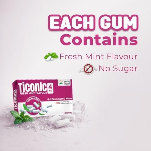 Healing Pharma – Ticonic Nicotine Gum Four mg Helps to Quit Smoking, Tobacco & Gutka Chewing | Fresh Mint Flavour | Sugar Free | Quit Smoking In 12 Weeks – 10 Gum x Pack of 2 – Fast Shipping to USA & Canada