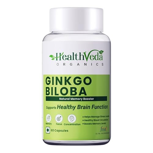 HEALTH VEDA ORGANICS PRIVATE LIMITED Ginkgo Biloba 120 mg | 60 Veg Capsules | Supports Better Concentration & Memory | For both Men & Women – Fast Shipping to USA