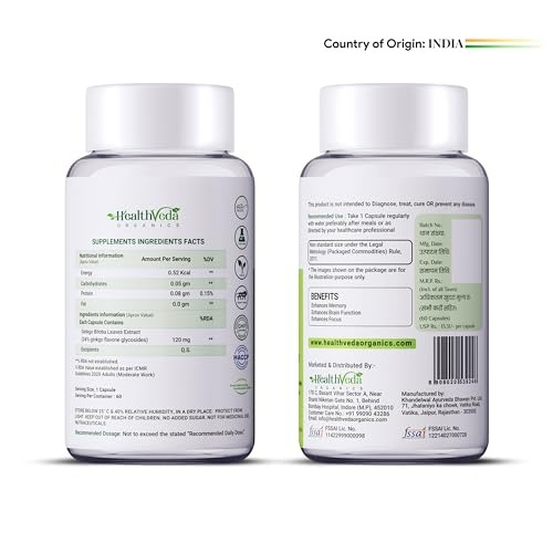 7 reviews for HEALTH VEDA ORGANICS PRIVATE LIMITED Ginkgo Biloba 120 mg | 60 Veg Capsules | Supports Better Concentration & Memory | For both Men & Women – Fast Shipping to USA