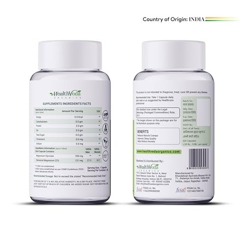 - ENHANCED ABSORPTION: Health Veda Organics Magnesium Glycinate Capsules feature highly absorbable magnesium that offers nutritional support for promoting natural tranquility and optimal muscle performance. Magnesium plays a crucial role in numerous essential bodily functions, particularly those vital for nerve and muscle well-being.