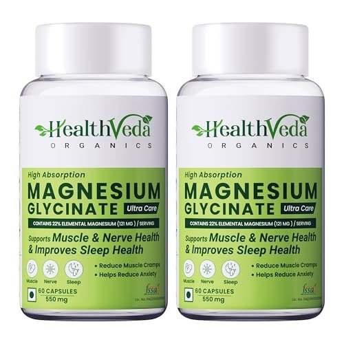 11 reviews for HEALTH VEDA ORGANICS PRIVATE LIMITED High Absorption Magnesium Glycinate, 550mg | 120 Veg Capsules | Supports Nerve & Muscle Health | Improves Sleep Quality | For Both Men & Women (Pack of 2) – Fast Shipping to USA