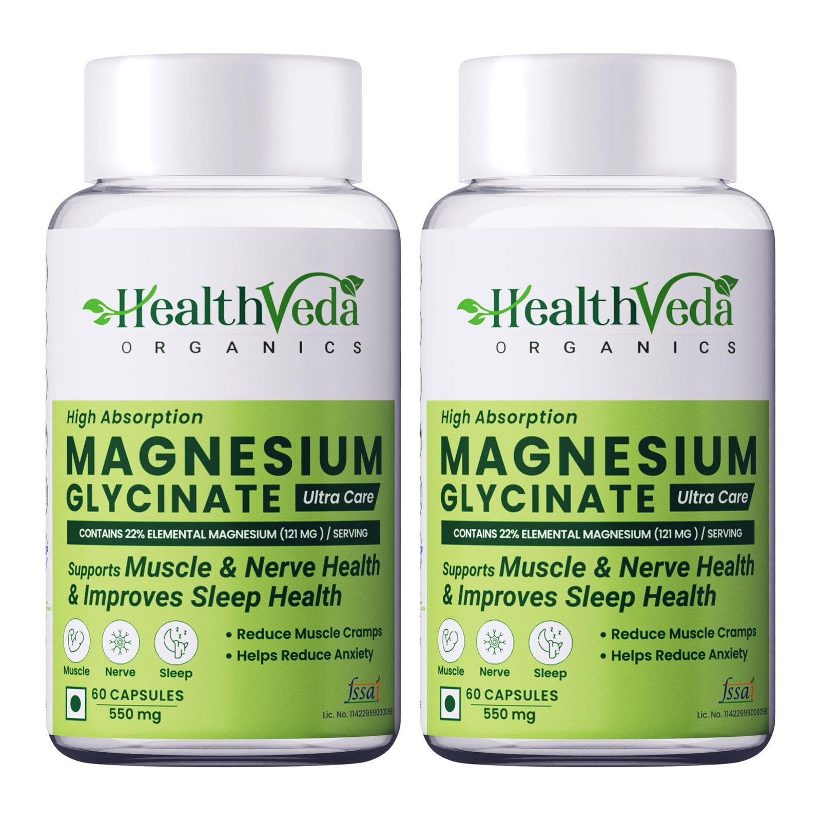 HEALTH VEDA ORGANICS PRIVATE LIMITED High Absorption Magnesium Glycinate, 550mg | 120 Veg Capsules | Supports Nerve & Muscle Health | Improves Sleep Quality | For Both Men & Women (Pack of 2) – Fast Shipping to USA