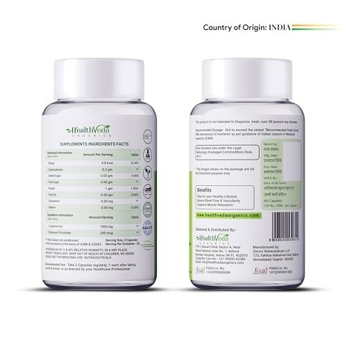 - OPTIMAL FOR YOUR WELLNESS ROUTINE: Health Veda Organics L-Arginine Capsules promote energy generation and boost blood circulation to active muscles, improving nutrient transport and aiding in toxin removal, helping you maintain energy throughout the day.