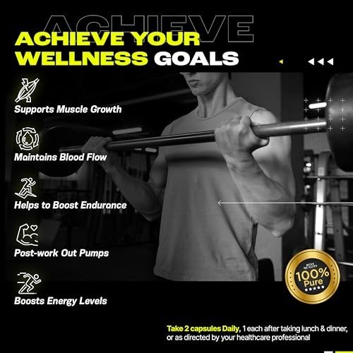 - ENHANCES ENERGY LEVELS: L-Arginine supplies essential nutrients to your muscles. It aids in sustaining energy levels, promoting muscle development, and enhancing muscle density, all while minimizing fatigue.