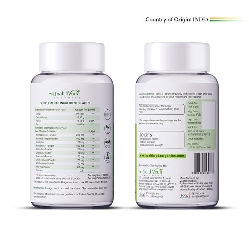 • JOINT SUPPORT SUPPLEMENT: Health Veda Organics Joint Support Tablets enhance joint mobility, improve joint flexibility, reinforce joint structure, and safeguard joint tissue.