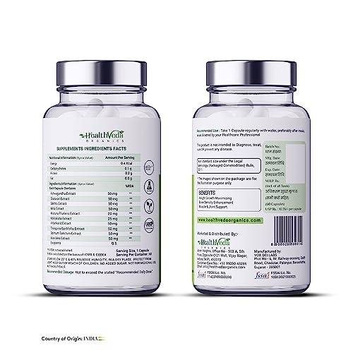 - FREE FROM CHEMICALS AND PRESERVATIVES: Composed entirely of natural ingredients, devoid of harmful additives or preservatives. Health Veda Organics ProPlus Capsules serve as a natural growth enhancer, rich in essential nutrients crucial for robust bone development and strength.