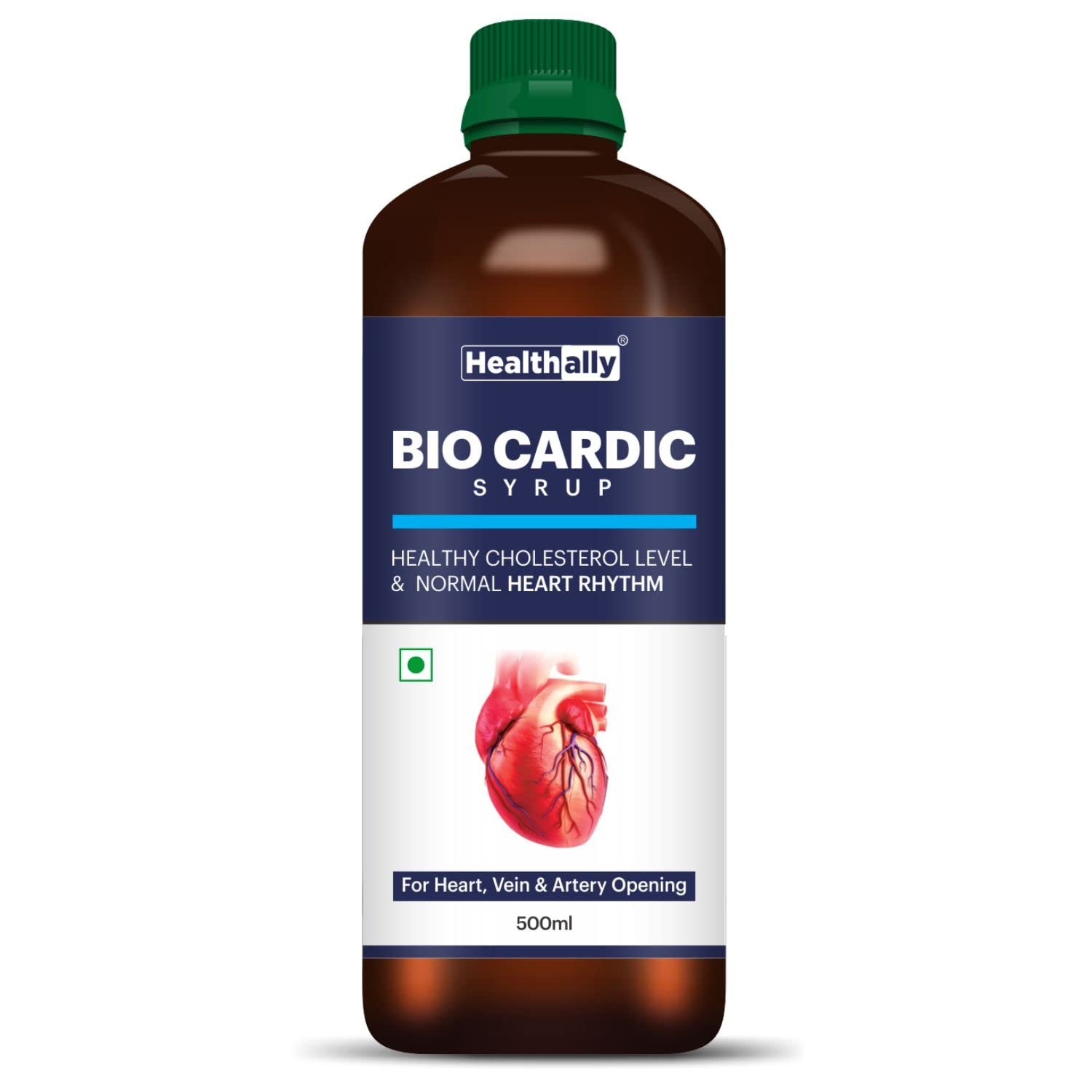 Healthally BioCardic Cardiac Care & Heart Health Syrup|Manage Cholesterol Level & BP Control Syrup with Arjunchaal Punarva Shankhpushpi Sarpagandha|Relieve Chest Blockage & Pain – 500 ML – Fast Shipping to USA