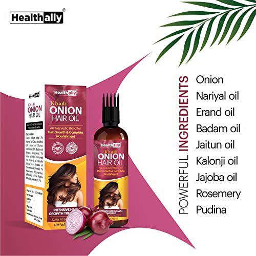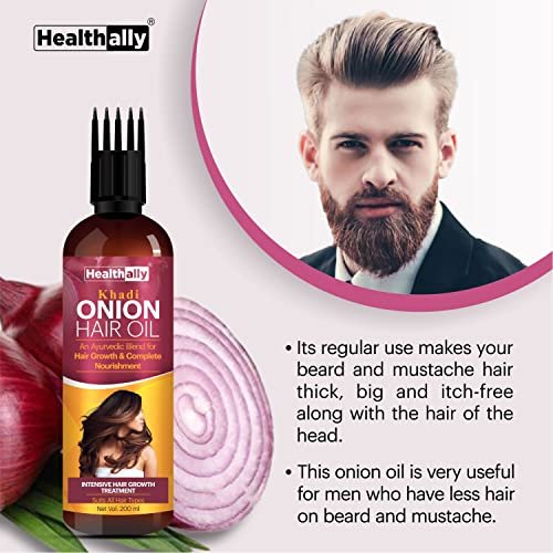 Healthally Khadi Onion Hair Oil Ayurvedic Hair Fall Control Oil for Men & Women, Hair Loss Breakage & Dandruff Control Onion Hair Oil | Chemicals Silicon Mineral Oil free Formula – 200ml – Fast Shipping to USA & Canada